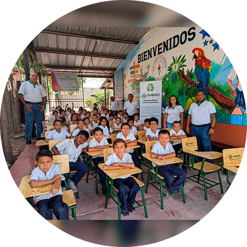 Además, durante 2024 como parte del programa realizamos donaciones de 2,086 pupitres, 12 juegos de sillas y mesas unipersonales, 8 mesas tripersonales y 25 sillas en 54 centros educativos públicos ubicados en Francisco Morazán, Comayagua, Atlántida, Yoro, Colón, Cortés, El Paraíso, Choluteca, Olancho y Valle, por un monto de 2 millones de lempiras.